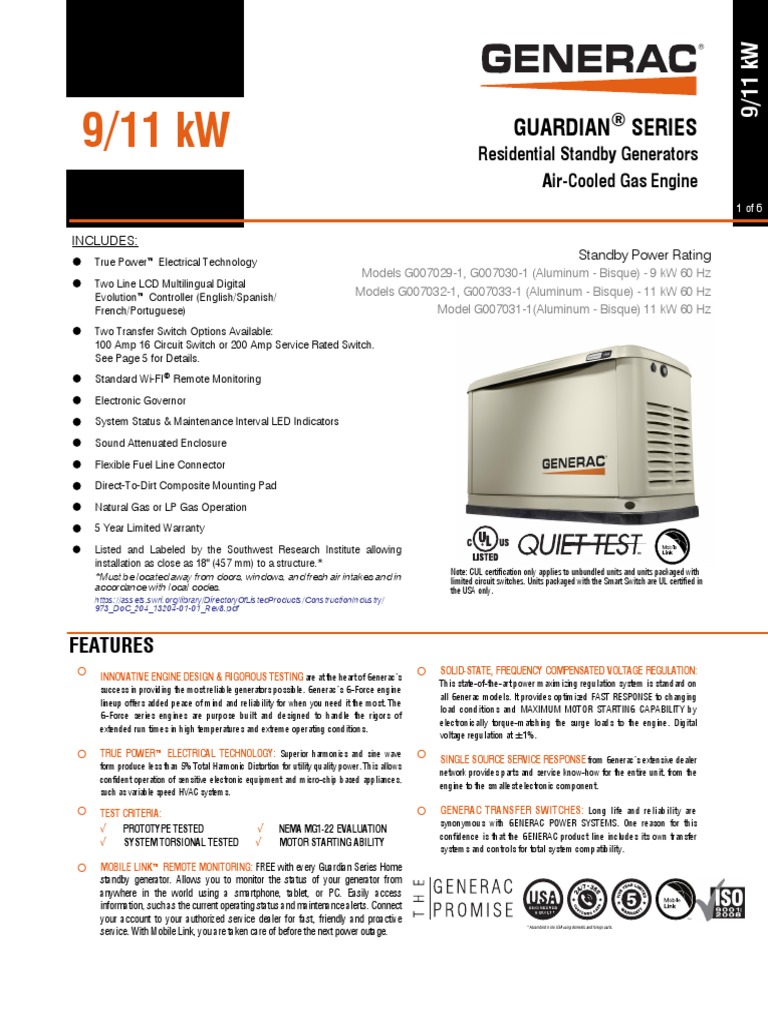 Generac’s commitment to continuous improvement, innovation and technology is giving us the ability to bring more power to you. Generac created the home standby generator market over 60 years ago and continues to provide innovative backup power solutions to homeowner’s across the world. Check the generac guardian® 24kw standby generator system (200a service disc. For btu content, multiply ft 3..