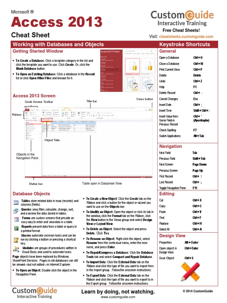 Microsoft Access 2013 Cheat Sheet printable pdf download