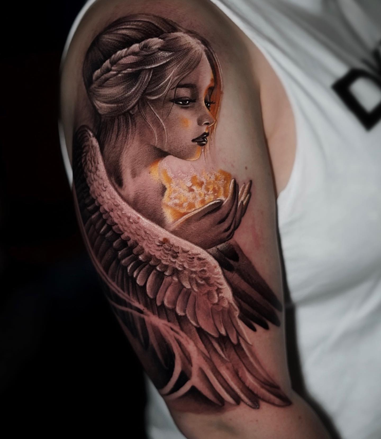 Angel tattoo meanings, designs and ideas with great images to inspire you. Learn about the story of angel tats and symbolism. There are many varieties of angel tattoos and you will not be limited for choice when you start searching for the right tattoo that addresses. For some, angel tattoos commemorate a loved one or symbolize personal transformation and resilience.