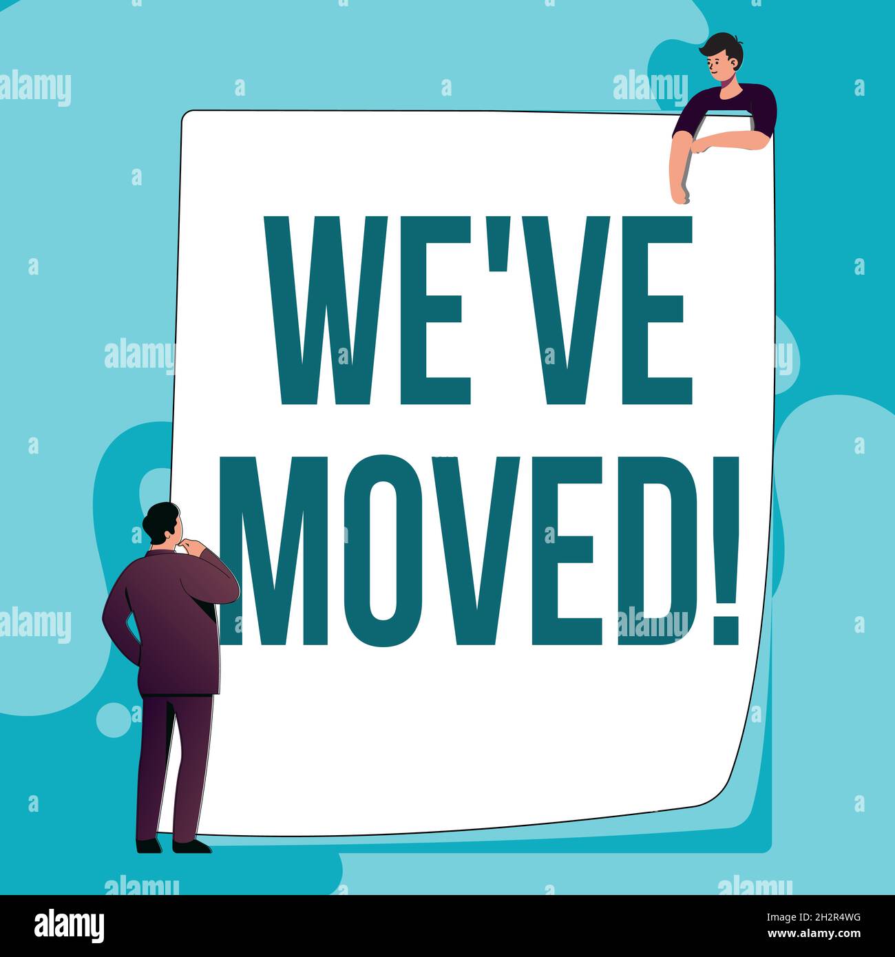 Text caption presenting We Ve Moved. Word for To go from one residence