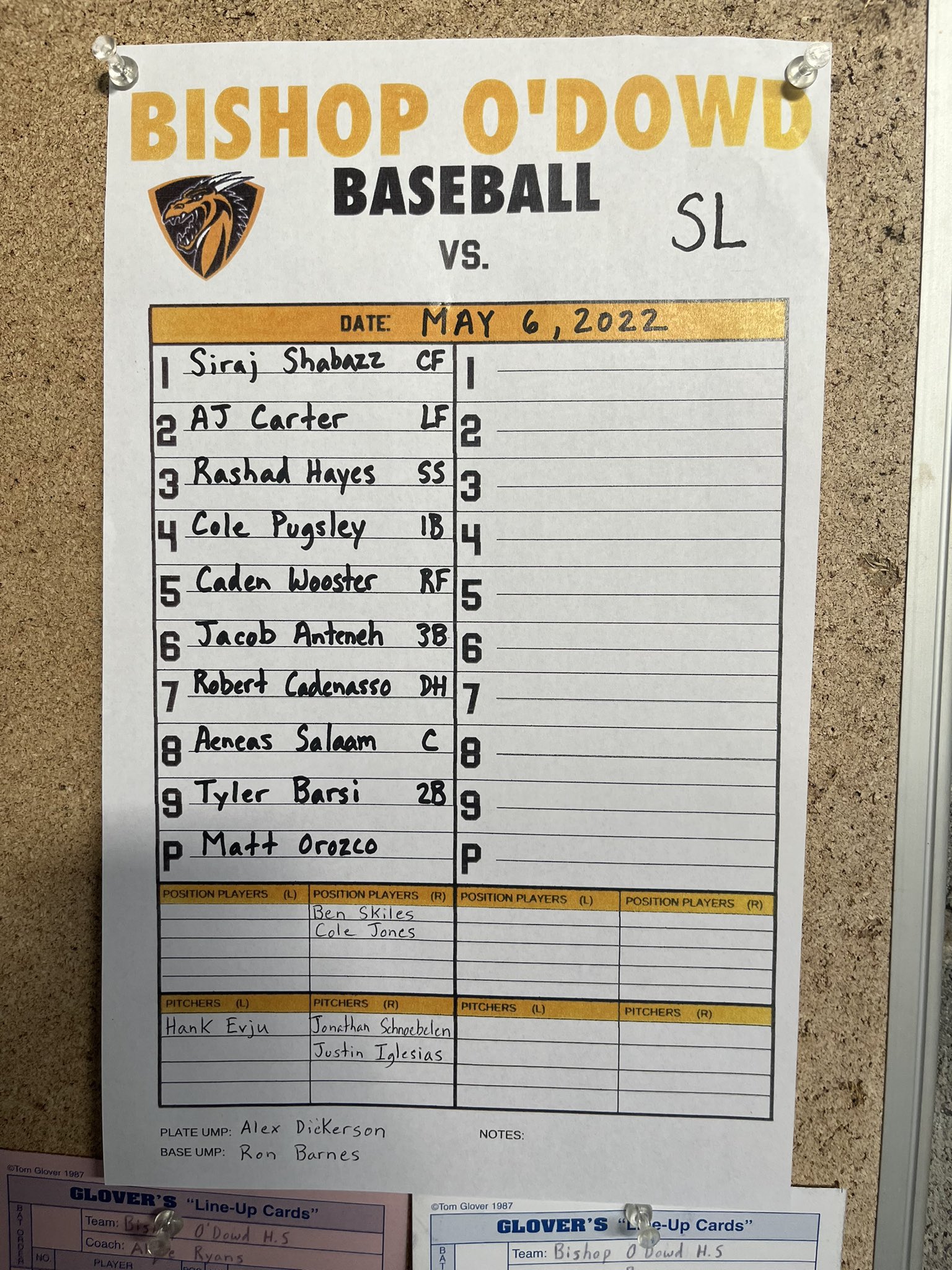 O'Dowd Baseball on Twitter "Game’s in progress. today’s lineup