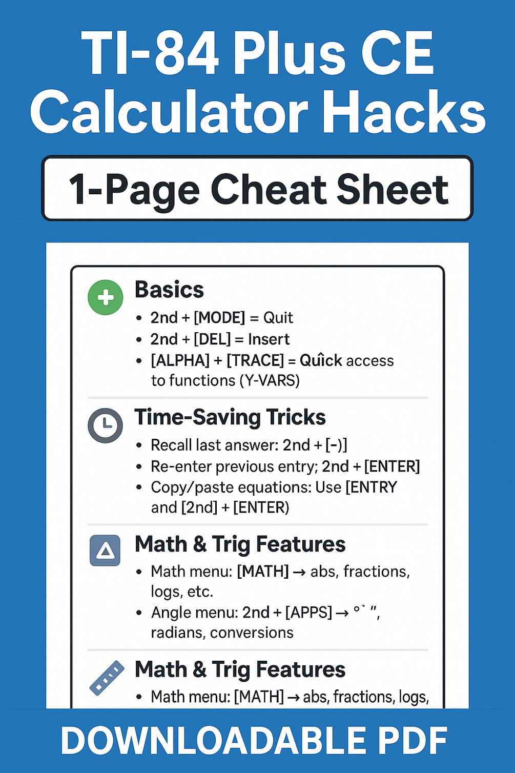 TI84 Plus CE Calculator Hacks 1Page Cheat Sheet