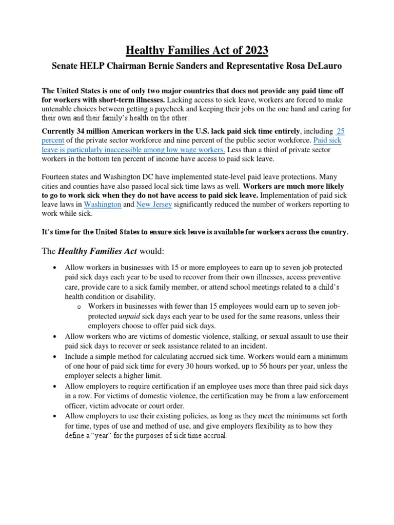 Fact Sheet for Healthy Families Act of 2023 PDF Sick Leave
