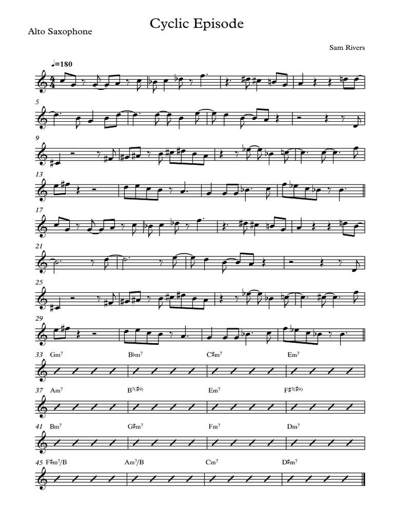 The document contains sheet music for a cyclic composition by sam rivers. Cyclic episode est une composition du saxophoniste sam rivers enregistrée sur en 1964 sur son album fuchsia swing song avec. Learn more about the history and tradition of this standard with free chord charts, analysis, history, backing tracks, transcriptions and much more! Share, download and print free sheet.