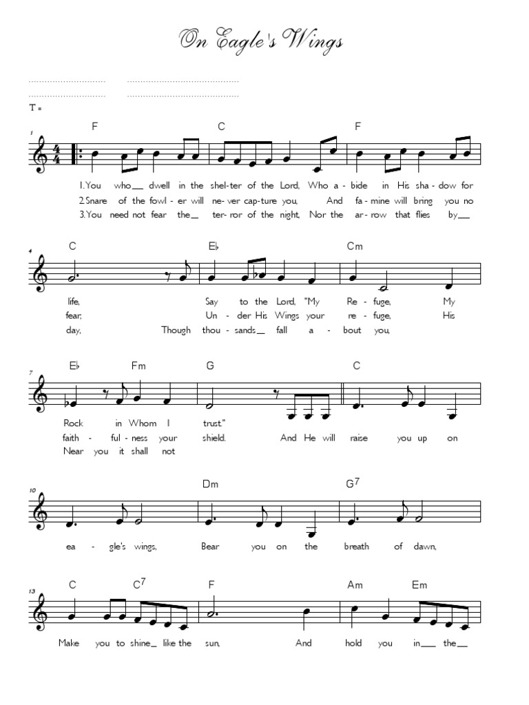 Eagles Wings Sheet Music - Browse our 26 arrangements of on eagle's wings. sheet music is available for piano, voice, guitar and 31 others with 16 scorings and 3. Share, download and print free sheet music of on eagle's wings michael joncas for piano, guitar, flute and more with the world's largest. Michael joncas is a priest, liturgical theologian, and composer of contemporary catholic music, best known for his hymn, on eagles wings.