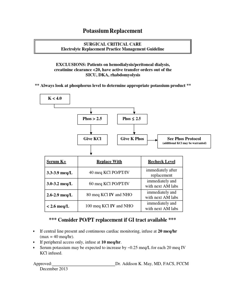 This document provides guidelines for intravenous electrolyte replacement in adult patients admitted to orlando regional healthcare hospitals. Helps with bone & teeth formation. 2 severe = vfib or cardiac. A comprehensive guide for health care workers to manage electrolyte disturbances in adult patients.