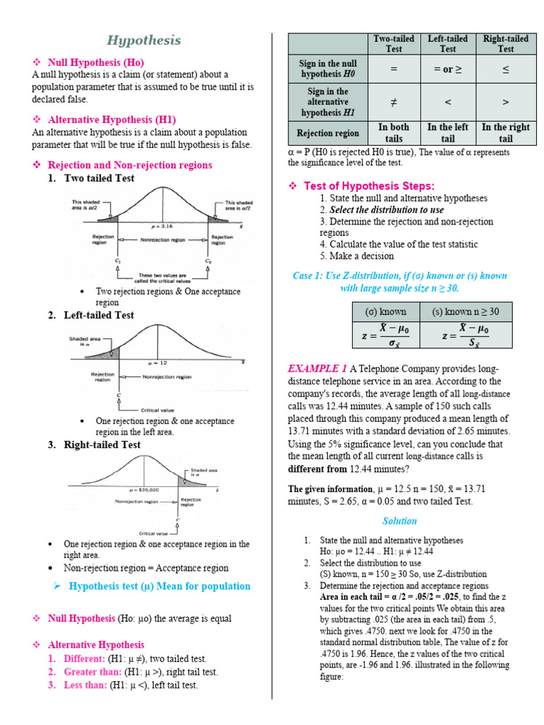 Is the opposite of h 0 and involves the claim to be tested. Is supported only by carrying out the. This free pdf cheat sheet will show you the differences between all of the main types of hypothesis testing. Also called research hypothesis or h 1. Reject the null hypothesis when the null hypothesis is true type ii error: