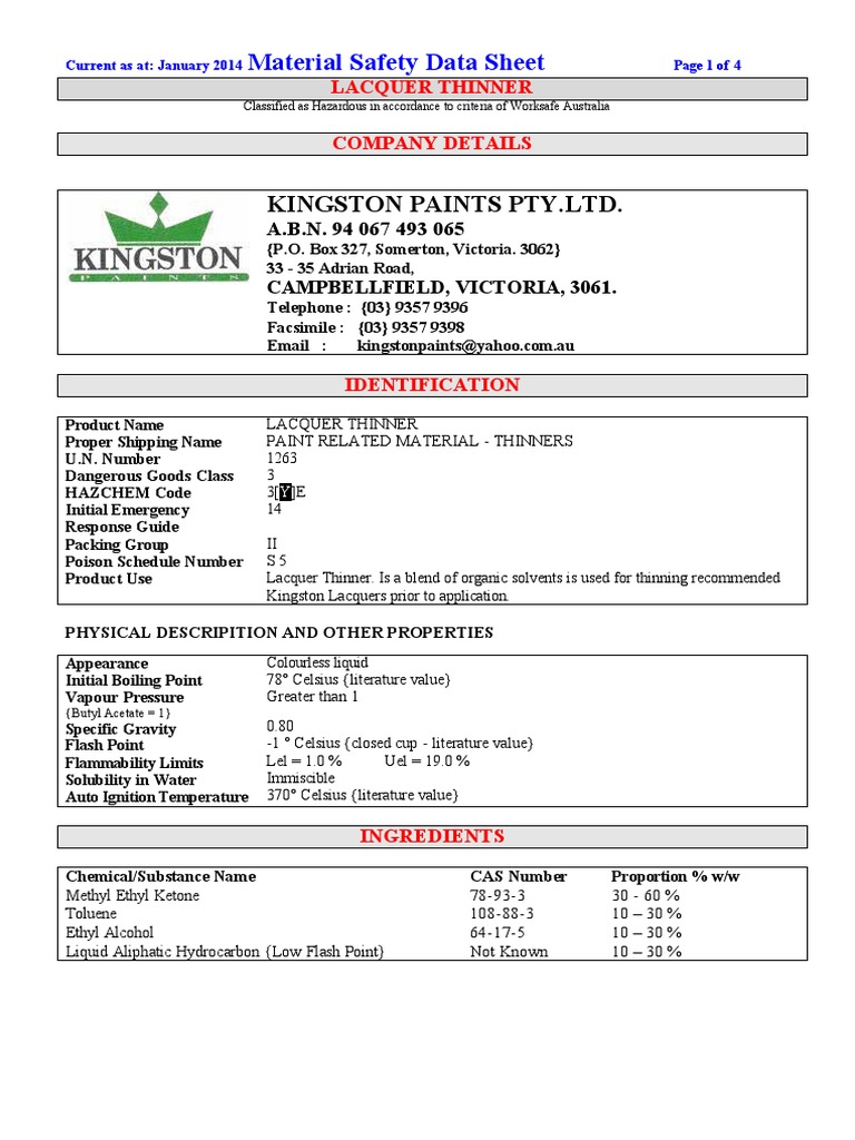 Safety data sheet sw1 lacquer thinner version 1.0 revision date: Sunnyside lacquer thinner _____ first aid measures general advice show this safety data sheet to the doctor in attendance. Using the toxicity data listed in section 11 and 12 the product is labeled as follows. Lacquer thinner safety data sheet supercedes revision: