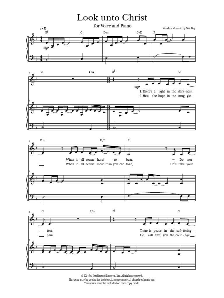 Look Unto Christ Sheet Music - Look— show him your faith, look— show him your faith. Look unto christ 2025 youth theme pdf sheet music higher key bb (pay what you choose paypal burtwp@yahoo.com) $ 0.00 look unto christ 2025 youth theme pdf sheet music. Look un to christ, c. 38 b c give him all dm solo s a t b 40 your doubts, and you’ll find oo. 40 gm f his strength.