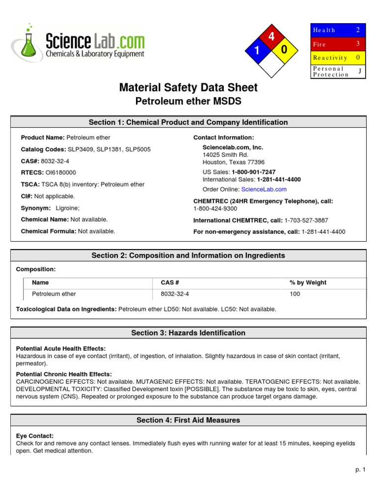 Material Safety Data Sheet Petroleum Ether - Gloves must be inspected prior to. Safety data sheet version 6.12 revision date 09/08/2024 print date 09/09/2024 section 1: Iosh (us) or en 166. Od industrial hygiene and safety practice. Before breaks and at the end. Not for medicinal, household or other use. Safety data sheet version 6.6 revision date 08/25/2022 print date 10/08/2022 section 1: Handle in accordance with good industrial hygiene and safety practice. Identification of the substance/mixture and of. View or download the petroleum ether msds (material safety data sheet) or sds for 101769 from merck.