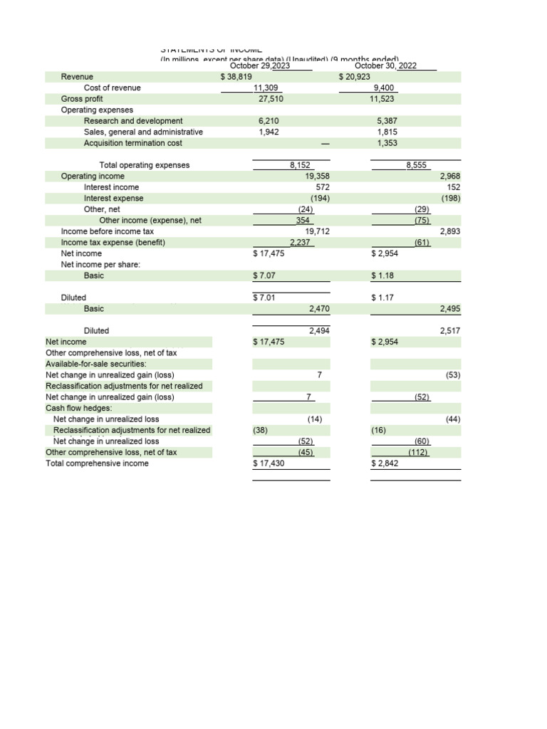 Nvidia Excel PDF Balance Sheet Equity (Finance)