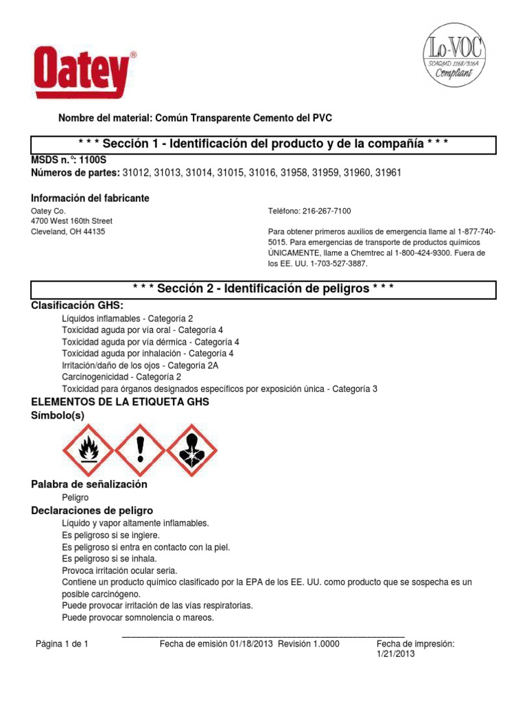 Oatey Pvc Cement Safety Data Sheet - Cover with plastic sheet to prevent spreading. If material gets into eyes or if fumes cause irritation, immediately flush eyes. Dried cement with oatey plumber's hand cleaner or baby oil. Oatey plumber's hand cleaner or baby oil. Danger highly flammable liquid and vapor. If material gets into eyes or if fumes cause irritation, immediately flush eyes. May be fatal if swallowed and enters airways. Dried cement with oatey plumber's hand cleaner or baby oil. Cover with plastic sheet to prevent spreading. If material gets into eyes or if fumes cause irritation, immediately flush eyes.