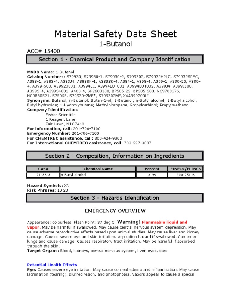 Safety Data Sheet nbuthanol Dangerous Goods Water