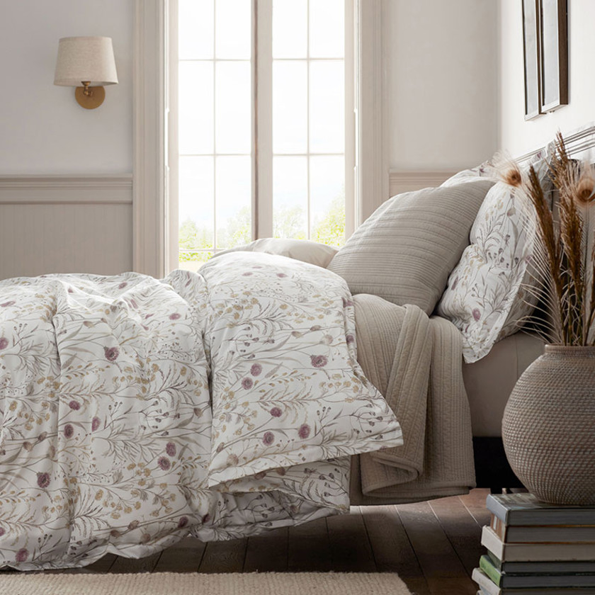 Thistle Floral Print Organic Percale Patterned Duvet Cover & Sham