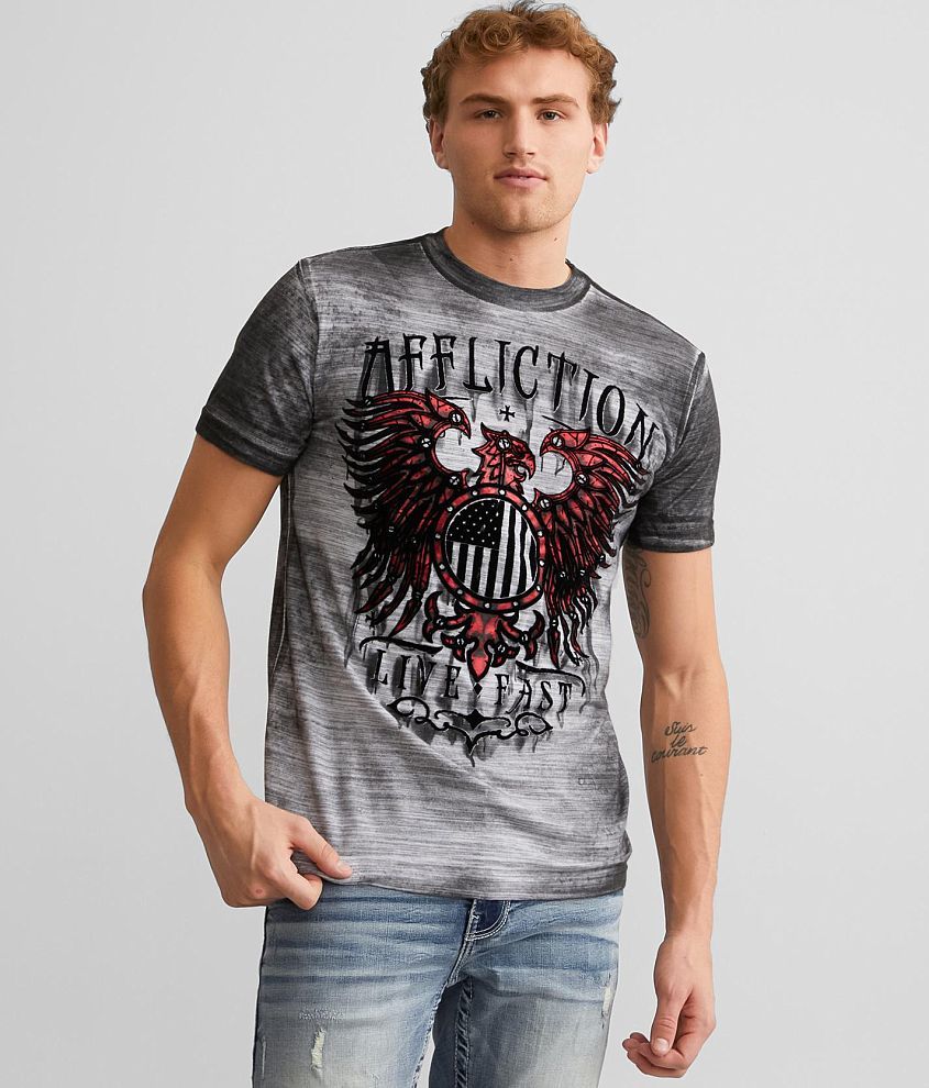 Affliction Sheet Metal TShirt Men's TShirts in White Grey Crystal