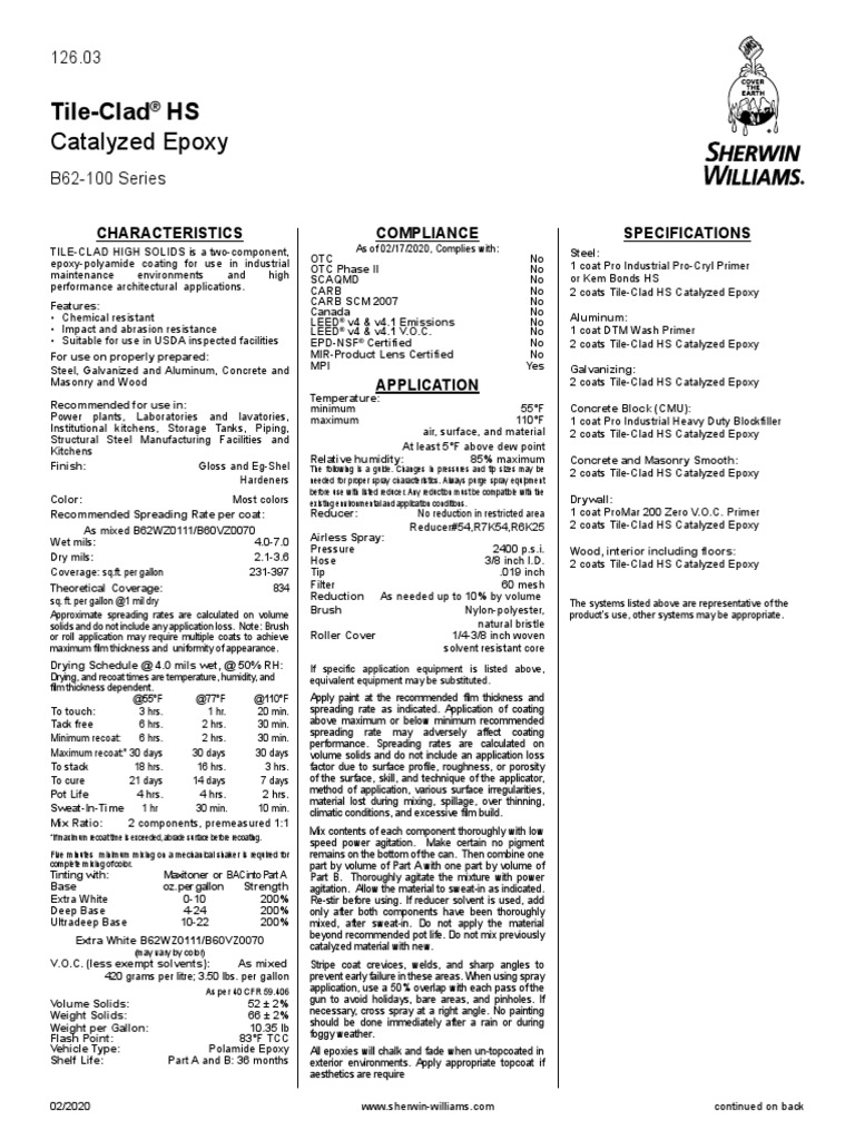 Catalyzed Epoxy TileClad HS PDF Paint Masonry