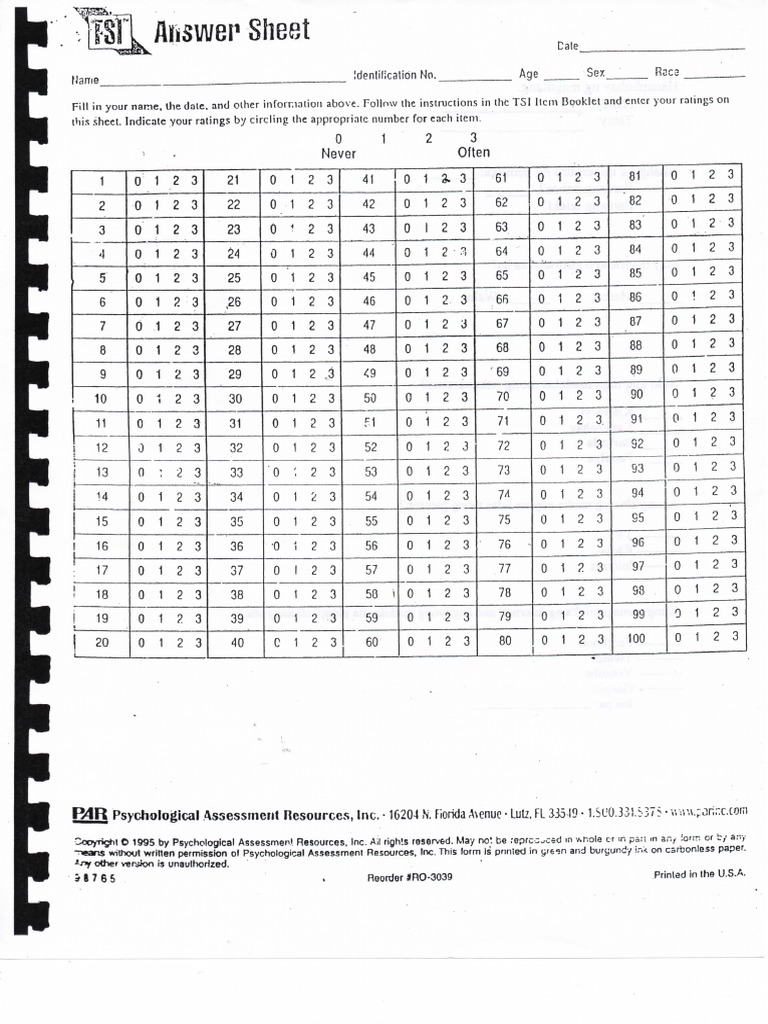 TSI Answer Sheet PDF